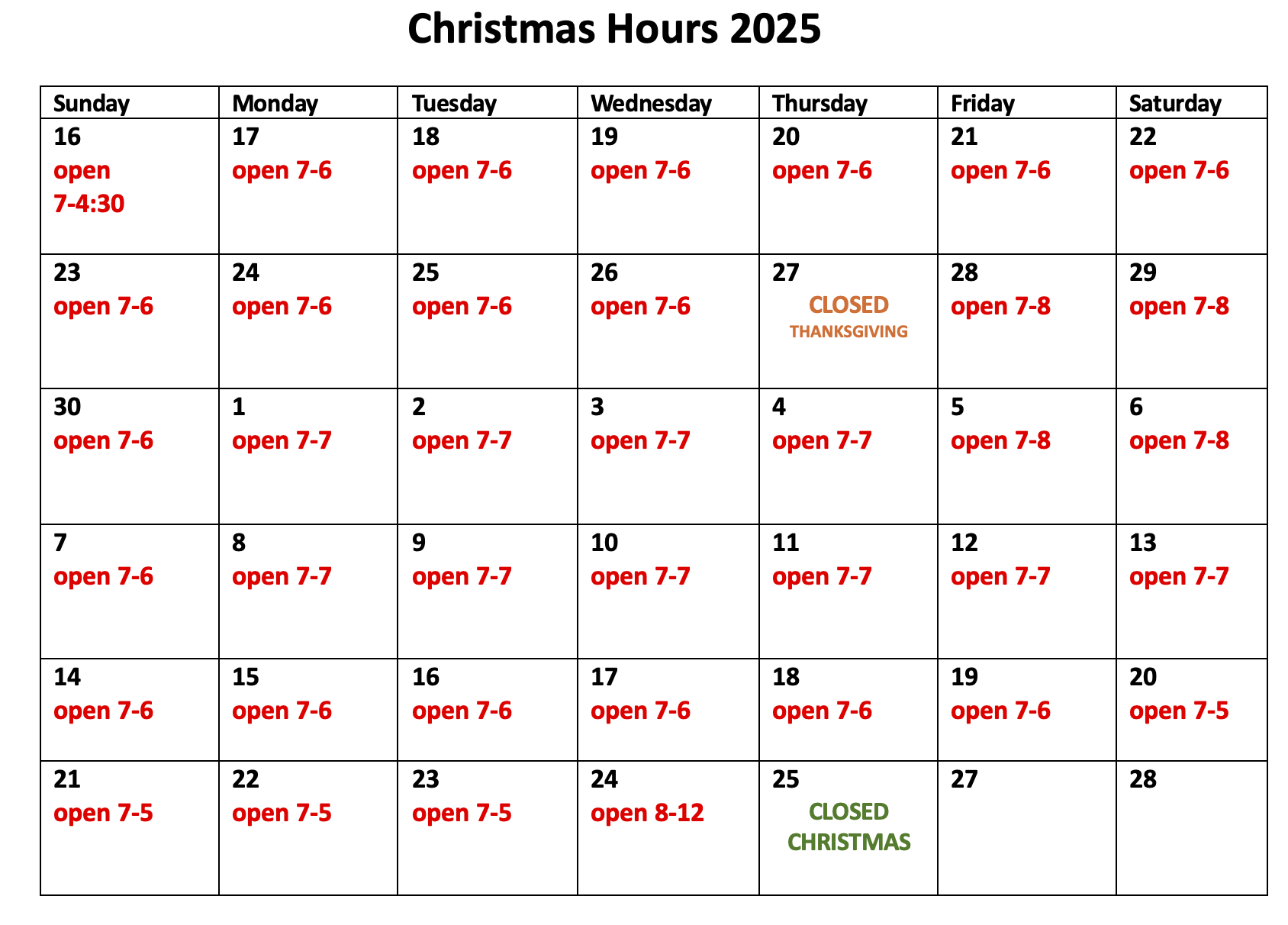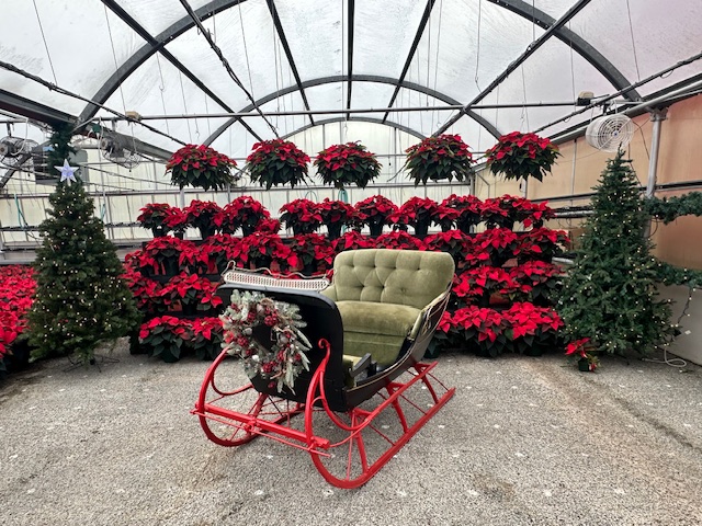 We also offer four free photo op setups for you to take pictures with your family and friends. Our traditional Antique Sleigh and Classic Red Truck are now joined by two beautiful bench displays. Join us for our open house weekends for free coffee, cookies, and cider the first two weekends after Thanksgiving.